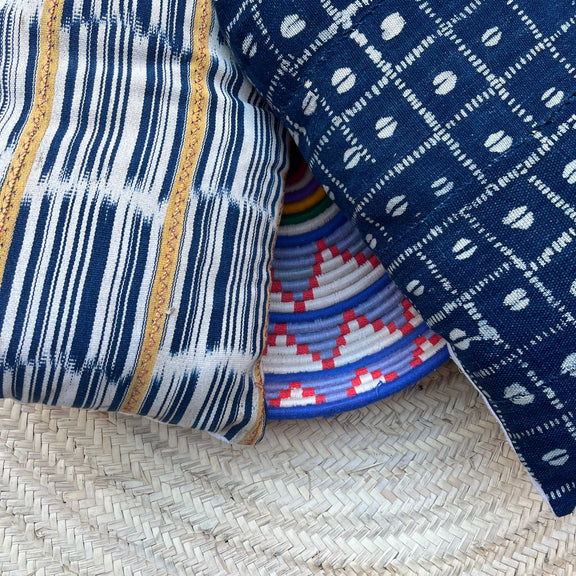 Los cojines MALI están hechos a partir de tejidos antiguos de Mali, como el dogon y el índigo.