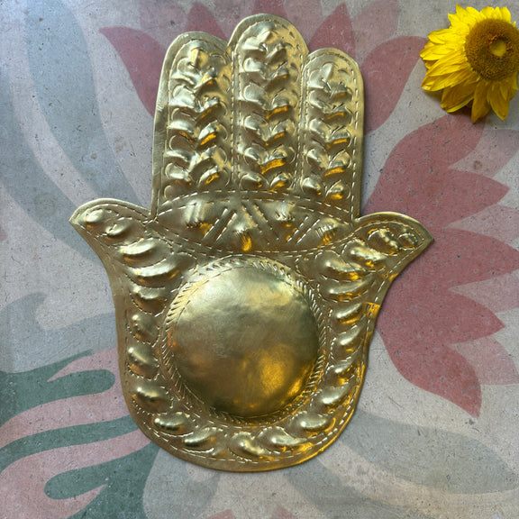Nuestras Manos de Fátima AMAZIGH están hechas a mano en latón por nuestro artesano en Marrakech.