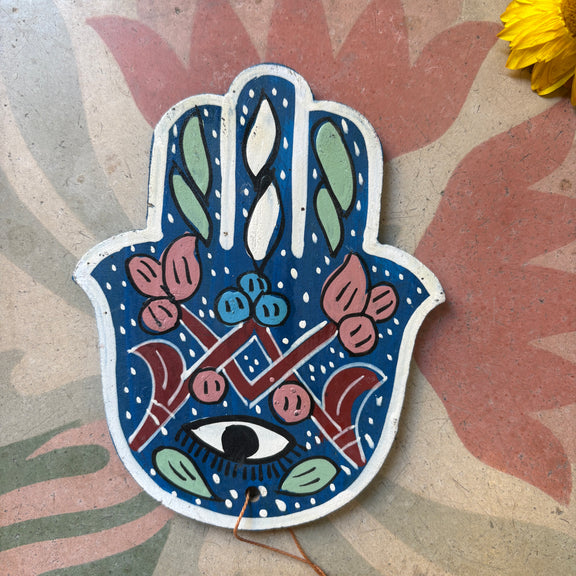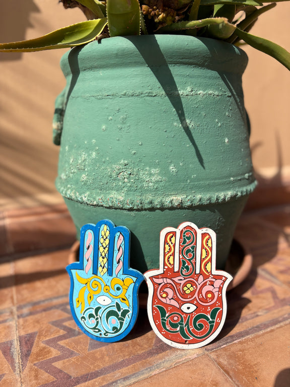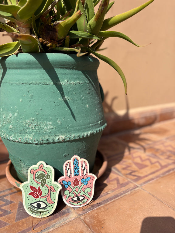 Nuestras bandejas de madera están fabricadas en zouac, un estilo de pintura tradicional marroquí, por nuestro artesano Toufik, en Marrakech.