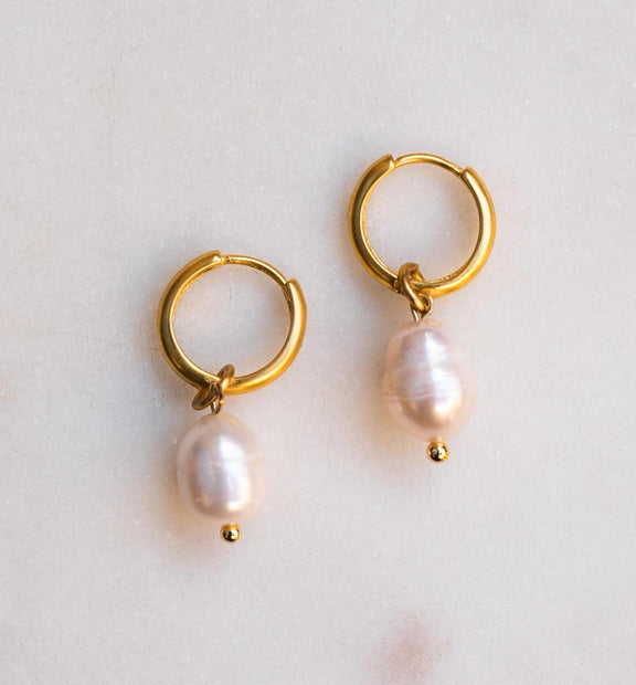 Les boucles d'oreilles NYOMAN sont créés à partir de vraies perles de l'île de Lombok.