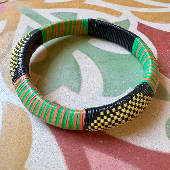 Nos bracelets sont faits à la main par des artisans au Mali qui recyclent le plastique des rues pour en faire ces magnifiques bracelets à porter seuls ou en accumulation.
