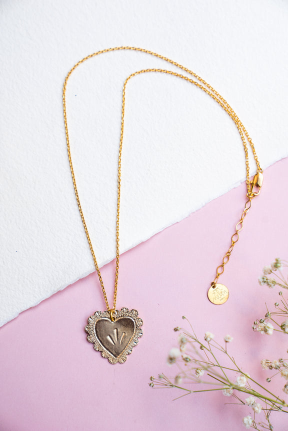 Le collier TAYRI, qui veut dire amour en langue Amazigh, est réalisé à la main par notre artisan bijoutier à Marrakech puis doré à l'or fin à Paris.