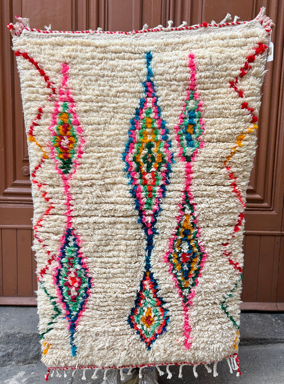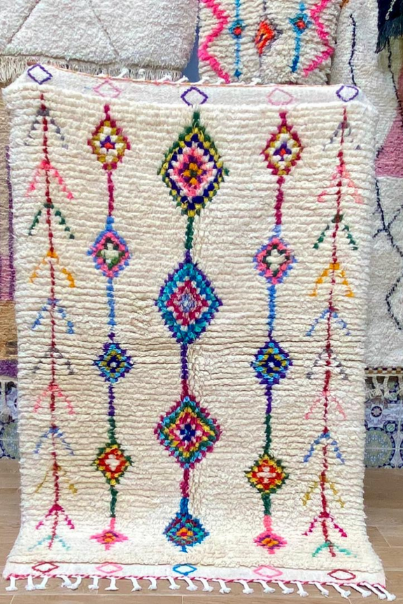 Les tapis Azilal viennent de la région d’Azilal, dans le Moyen Atlas marocain. Apparues il y a une vingtaine d’années, ces pièces uniques sont fabriquées sur métiers à tisser traditionnels en bois.